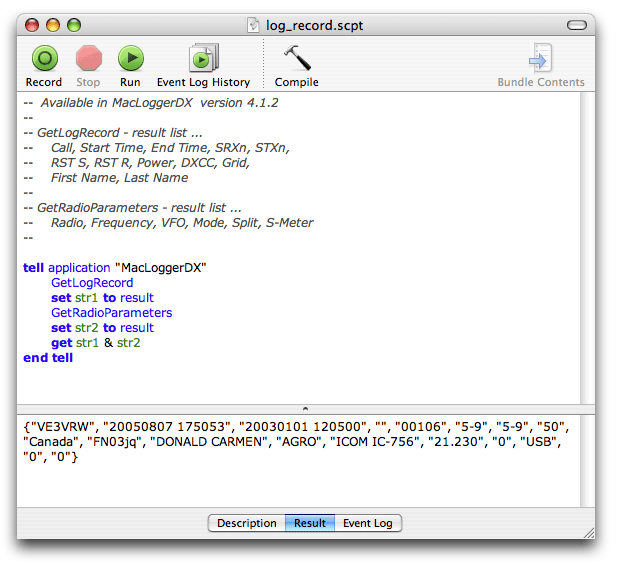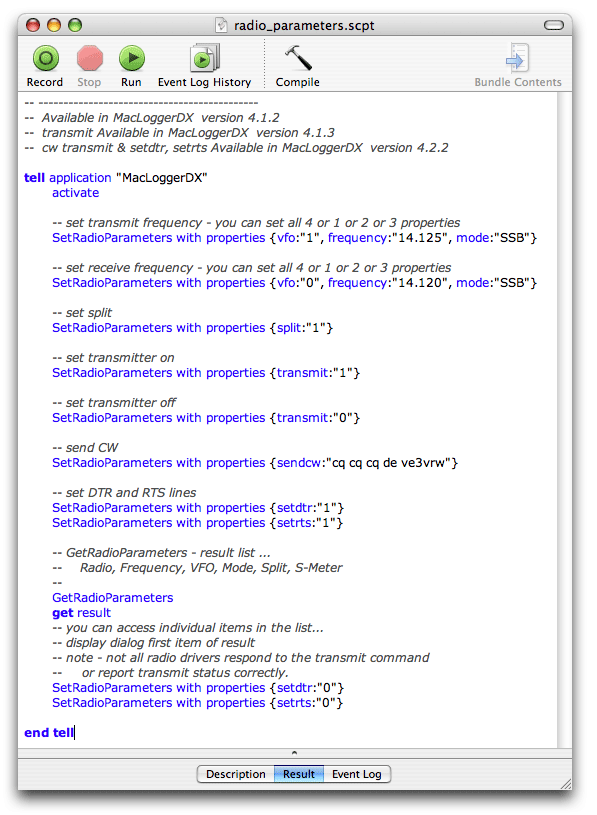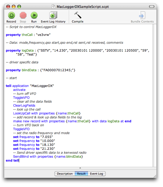 The following scripts are delivered in the MacLoggerDX Version 4 Sample Scripts Folder.