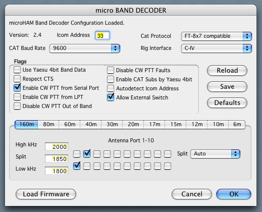 This dialog allows you to configure the microHAM micro BAND DECODER.