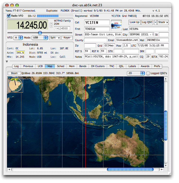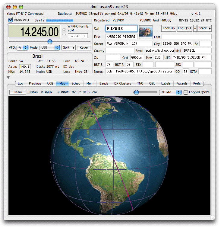 If the spot is clicked with the mouse, that spot is tuned on your radio and a look up is performed.