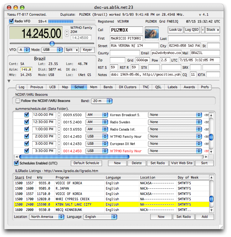 Each schedule item is comprised of a time (UTC), a frequency in Megahertz, a mode (AM, CW, LS, US, FM) a comment, an optional web URL and an on optional AppleScript seperated by <tab> characters and terminated by a carriage return: