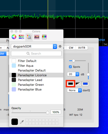 Click on the Color Well and select any arbitrary color or select from one of the supplied dogparkSDR defaults.